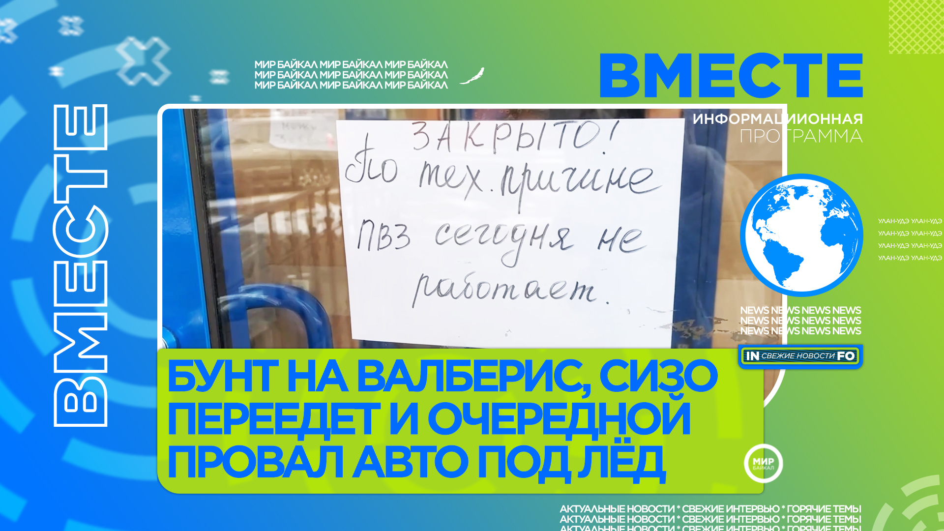 • Бунт на Валберис, СИЗО переедет и очередной провал авто под лёд • Пенсионерка из Бурятии мечтает подарить Путину вязаные носочки • Когда пассажирам в Улан-Удэ станет удобнее • Бездомные
